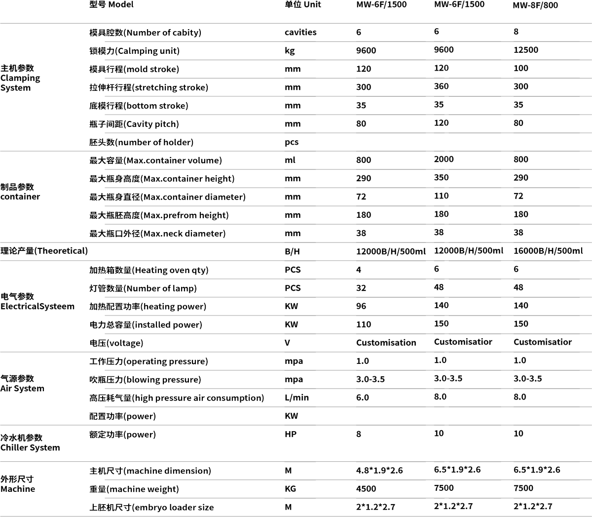 Servo motor for preform transfer Servo motor for preform loading Combination vlave and air recyling device for energy saving and environment protection PID Constant temperature control for heating preforms and fan forair ventilation